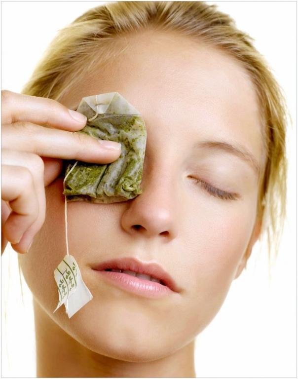 يحتوي الشاي الأخضر سواء كان المطحون منه، أو السائل نفسه على مضادات أكسدة، تعمل على تجديد خلايا البشرة، لتجعلها تتنفس لتقليل انتفاخات الوجه، كما يعمل على تهدئة البشرة والوقاية من حب الشباب.