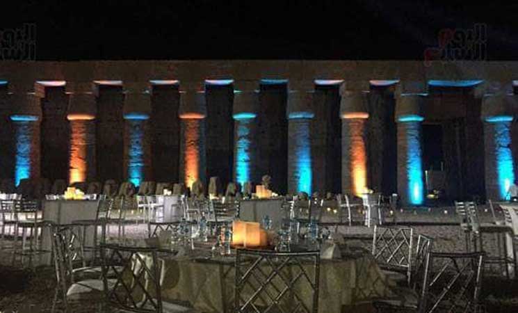 ومن المعروف أن بعض المعابد المصرية القديمة فى الأقصر، تشهد على فترات متباعدة، حفلات افتتاح وختام لمهرجانات فنية، أو عروض موسيقية، لكن حفلات العشاء يجرى إقامتها خارج المعابد وفى الساحات الأمامية منها، على أن تكون خلفيتها هى أعمدة المعابد وصروحها فقط.