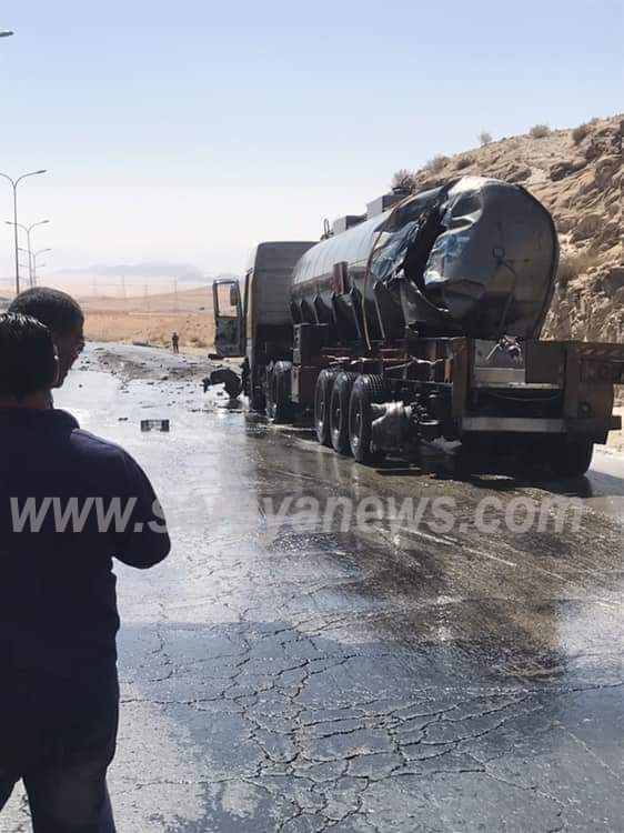 خاص - قال مصدر أمني لسرايا إن حادث سير وقع ظهر اليوم الأثنين على طريق النقب دبة حانوت التابعة لمحافظة العقبة جنوب الأردن ، حيث أسفر عن تصادم بين ثلاث شاحنات اثنتين صهريج محمله بمادة الفوسفوريك وواحده محمله بحاوية.