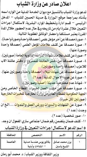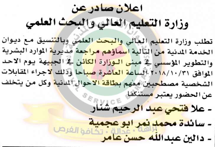 اقرا ايضا:مدعوون لمقابلات شخصية في التربية ووظائف في مختلف الوزارات - أسماء