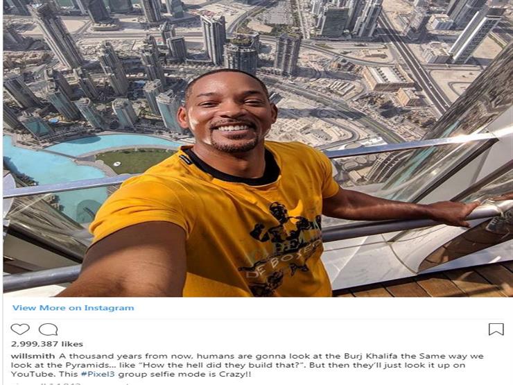 وفي صورة "سيلفي" أخرى مع البرج، كتب "سميث"، "بعد ألف عام من الآن.. سينظر الأشخاص إلى برج خليفة، مثلما ينظرون اليوم إلى الأهرام، ويتساءلون عن كيفي