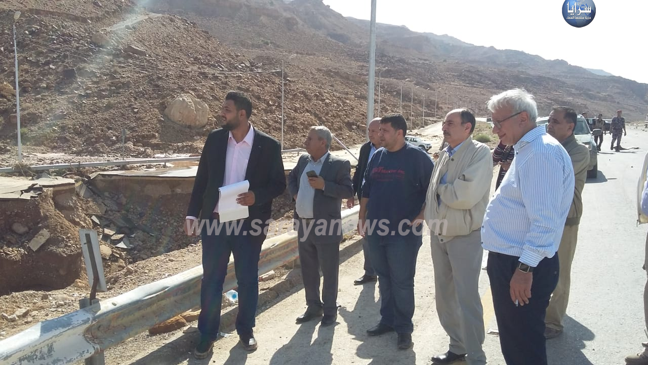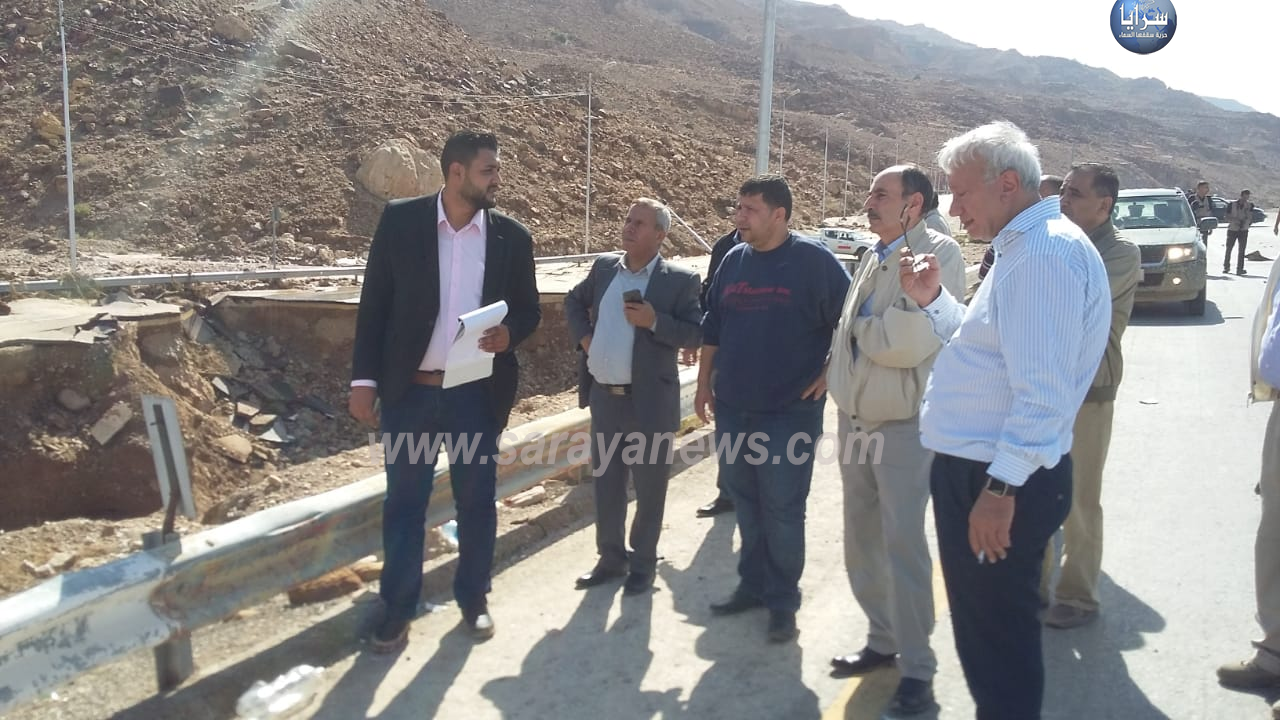 كما وحصلت سرايا على عدد من الصور اثناء تواجد وزير الاشغال فلاح العموش صباح اليوم وعدد من المهندسيين والمقاولين والمختصين في مكان الانهيار.