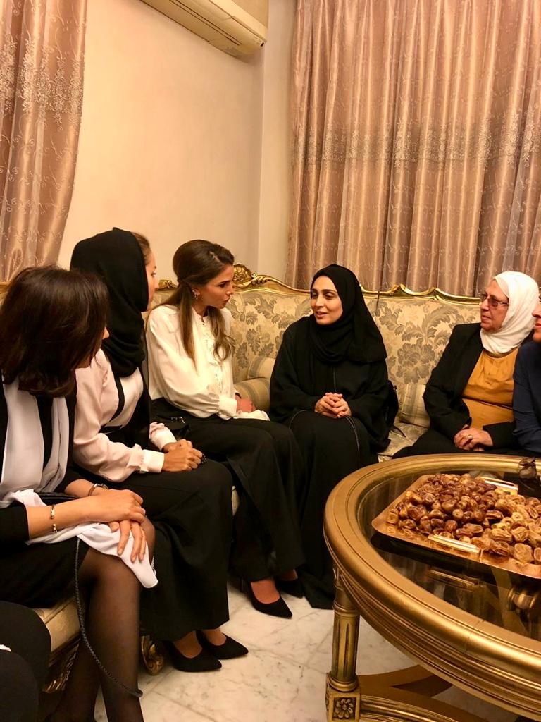 ودخول جلالتها على بيوت الاسر المكلومة تخطى حدود مراسم البروتوكول وترجم مشاعر الامومة حيث وصلت كلمات جلالتها الى قلوب افراد تلك الاسر بصدق، واستمعت الى صوت الالم الذي يعتصر القلوب ومسحت دموع الامهات مع الدعاء لله ان يجبر كسر قلوبهن ويلهمهن الصبر والسلوان.