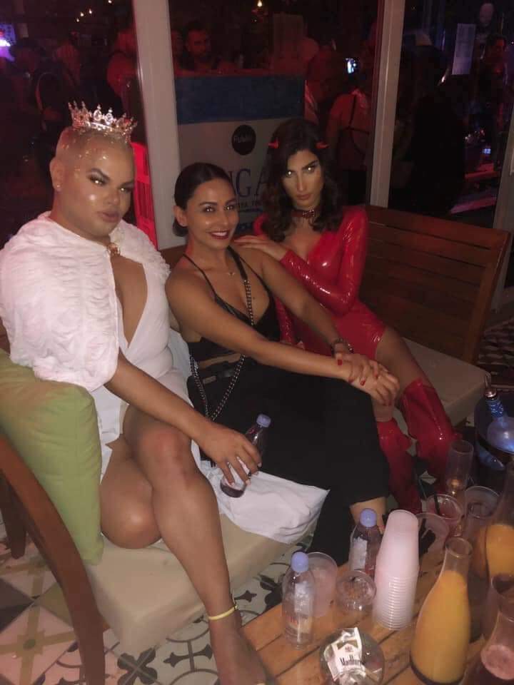 كما لفت أصدقاء الممثلة الأردنية الذين ظهروا بجوارها في الصور الأنظار، بسبب إطلالتهم الجريئة أيضًا وغير المألوفة التي تسببت في غضب رواد 'السوشال ميديا'.