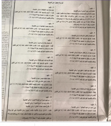 كما جاء في قرار الامهال "إنني آمر كل فرد من افراد الامن العام بالقبض على كل واحد وتسليمه الى السلطات المختصة”.