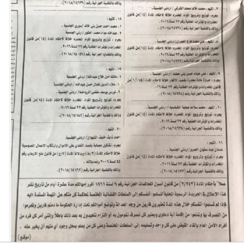 وجاء في قرار الامهال الصادر عن رئيس محكمة أمن الدولة العقيد القاضي العسكري الدكتور محمد العفيف، بأنه يطالب المتهمين الفارين من وجه العدالة بتسليم أنفسهم خلال عشرة أيام من تاريخ نشر قرار أمهالهم، وانه في حال عدم تسليم أنفسهم فإن المحكمة ستعتبرهم فارين من وجه العدالة، وتضع اموالهم تحت تصرف الحكومة.