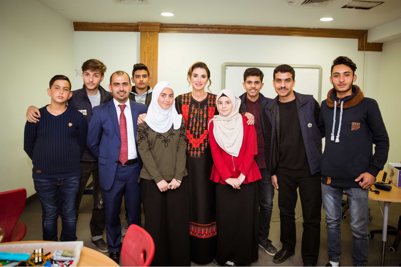وتبادلت جلالتها الحديث مع المتدربات في غرفة التدريب حول موضوع التفكير الابداعي مدار تدريبهن، وفي غرفة التفكير التقت مع فريق معان روبوت الذين تحدثوا عن قصة نجاحهم حيث حصل الفريق على جائزة افضل فريق وكأس افضل مدرب للمدرب عبدالله المجالي في المسابقة العالمية للروبوت التي اقيمت في بريطانيا عام 2017 وشارك فيها 93 فريق من 40 دولة.