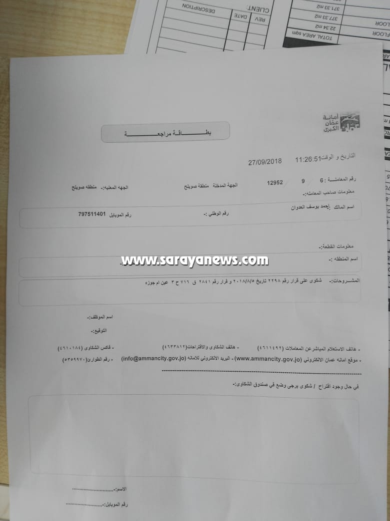 وبين المواطن انه يمتلك قرار هدم من محكمة صويلح ، مطالباً امانة عمان بازالة الكراج