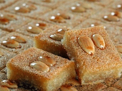 هي حلوى سهلة الصنع، لذيذة الطعم، غنية بالطاقة، محبوبة جدا في فصل الشتاء؛ لأنها تحتوي على السكر والنشويات والفيتامينات الموجودة في المكسرات، وهي ذات شعبية كبيرة في فلسطين، وخاصة في مدن: الخليل، وجنين، ونابلس؛ تشبه البسبوسة المصرية في المكونات، تختلف طرق تحضيرها ومقاديرها من بيت لآخر، تباع في الأسواق بشكل دائم. تتكون من: السميد والسمن والسكر والزبدة والرائب والدقيق والبيكنج باودر وماء الزهر والقطر.