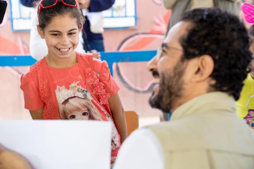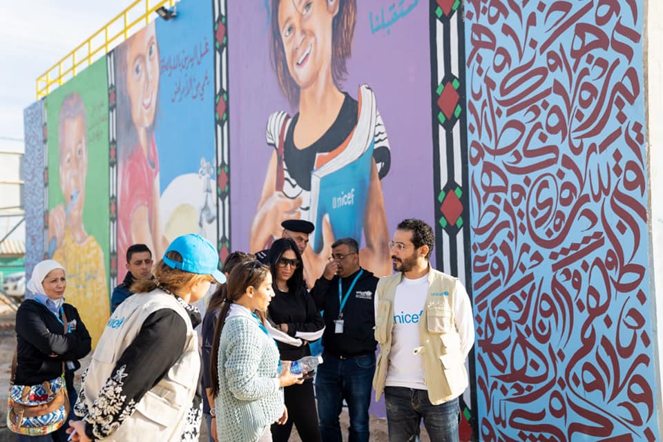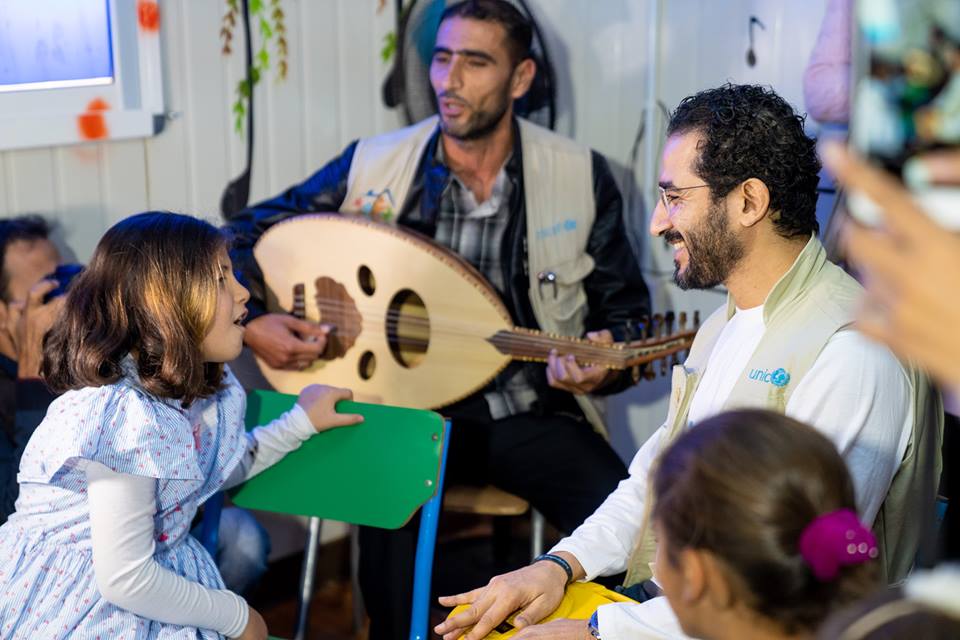 كما زار حلمي أحد مراكز "مكاني" التابعة لليونيسف، والتي توفر خدمات التعليم والحماية وبناء المهارات لنحو خمسة آلاف طفل وشاب في المخيم، حيث التقى الأطفال ممن يحصلون على فرص التعلم واللعب والابتكار والملتحقين ببرنامج العلاج بالموسيقى والدعم النفسي الاجتماعي.