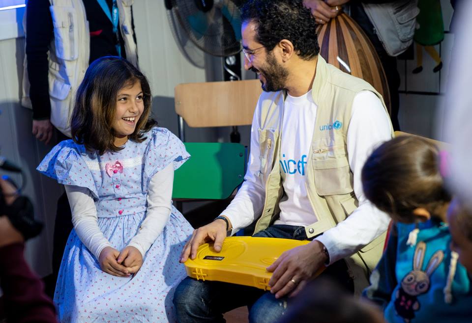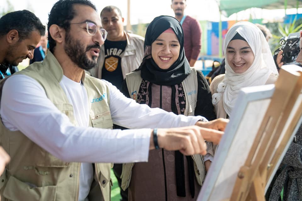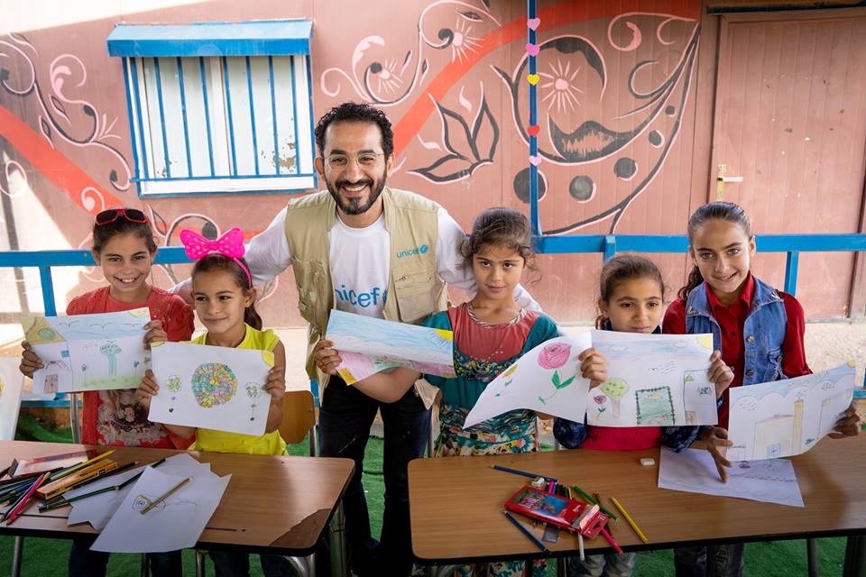 نشر الفنان المصري أحمد حلمي، سفير منظمة الأمم المتحدة للطفولة "اليونيسف" للنوايا الحسنة في مصر، صوره بين لاجئي واطفال مخيم "الزعتري" بمحافظة المفرق شمالي المملكة.