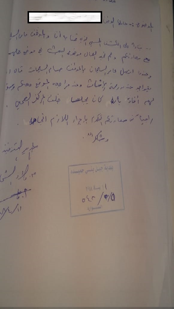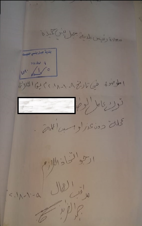 وأكد ان رئيس بلدية بني حميدة انه حاول مرات عديدة إجباره على ترك العمل بسبب خلافات شخصية بينهم ، مشيراً الى ان رئيس البلدية كان يعامل اقربائه معاملة خاصة تفرق عن الأخرين .