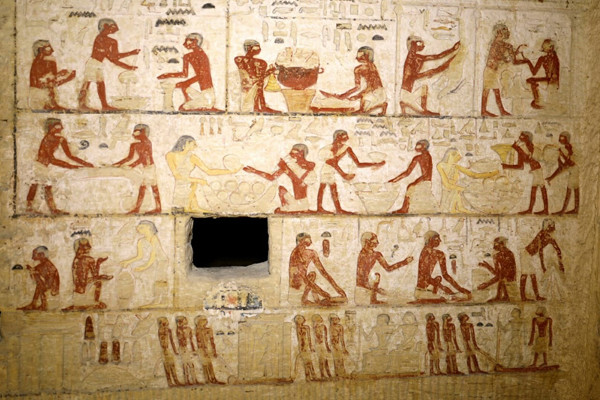 وأضاف وزيري، أن اسم زوجته "ورت بتاح"، وأمه "مريت مين"، وأن النقوش الموجودة تصور صناعة النبيذ والفخار وتقديم القرابين، وصناعة الأثاث الجنائزي ونحت التماثيل وصيد الطيور، ونصوصا من سيرته الذاتية. وتابع الخبير، أن أعمال الحفر سوف تستمر للكشف عن جميع ما تتضمنه المقبرة من أسرار ومحتويات.