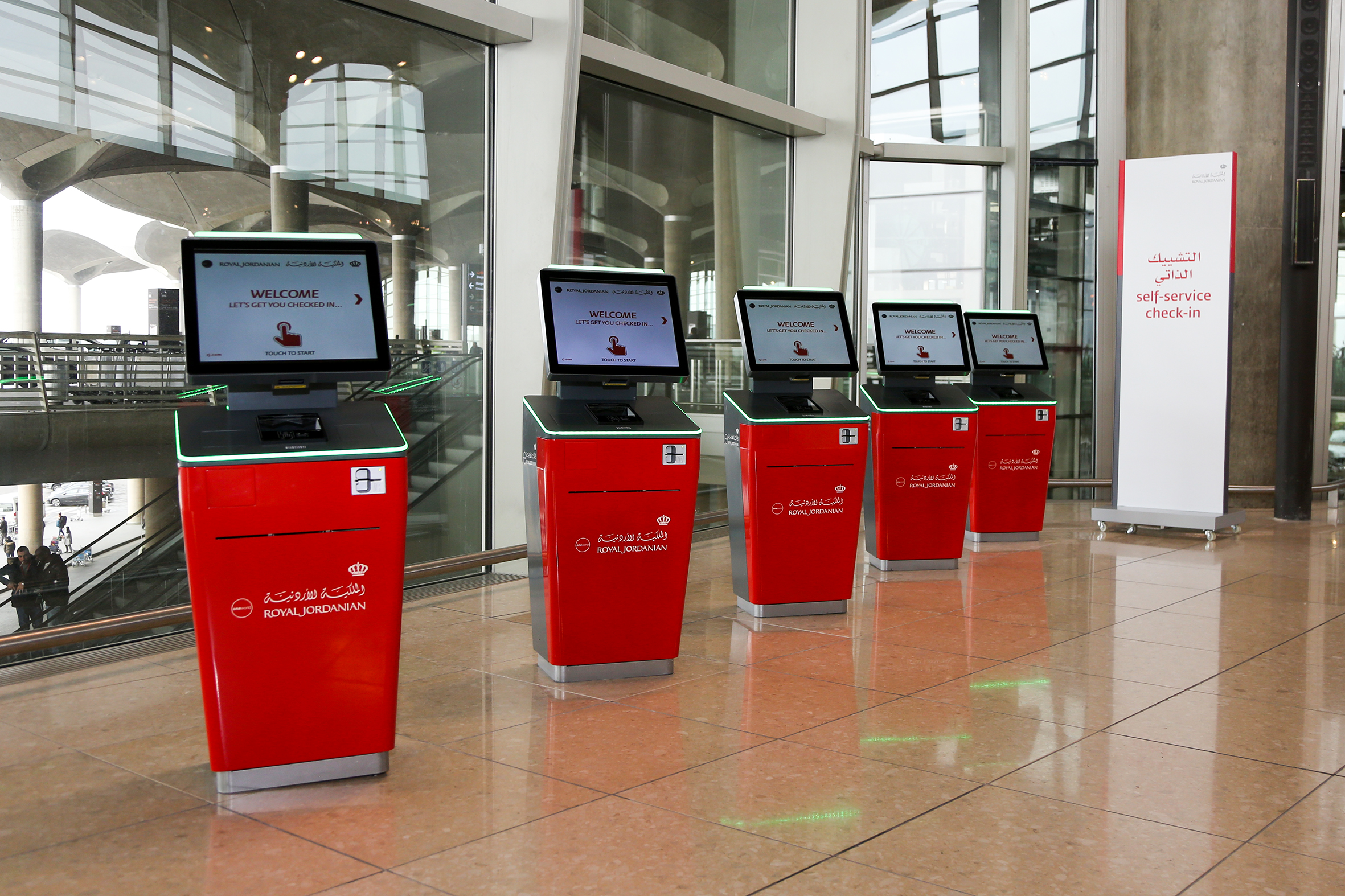 وسيتمكن المسافرون المغادرون عبر مطار الملكة علياء الدولي من إتمام جميع إجراءات السفر المتعلقة برحلاتهم مع الملكية الأردنية الى مختلف الوجهات على الشبكة، ما عدا محطات الشركة في أميركا الشمالية ولندن والتي لم تشملها هذه الخدمة الذاتية لأسباب تتعلق بالإجراءات الأمنية التي يتطلبها السفر إلى تلك الدول.