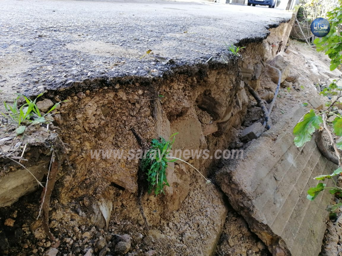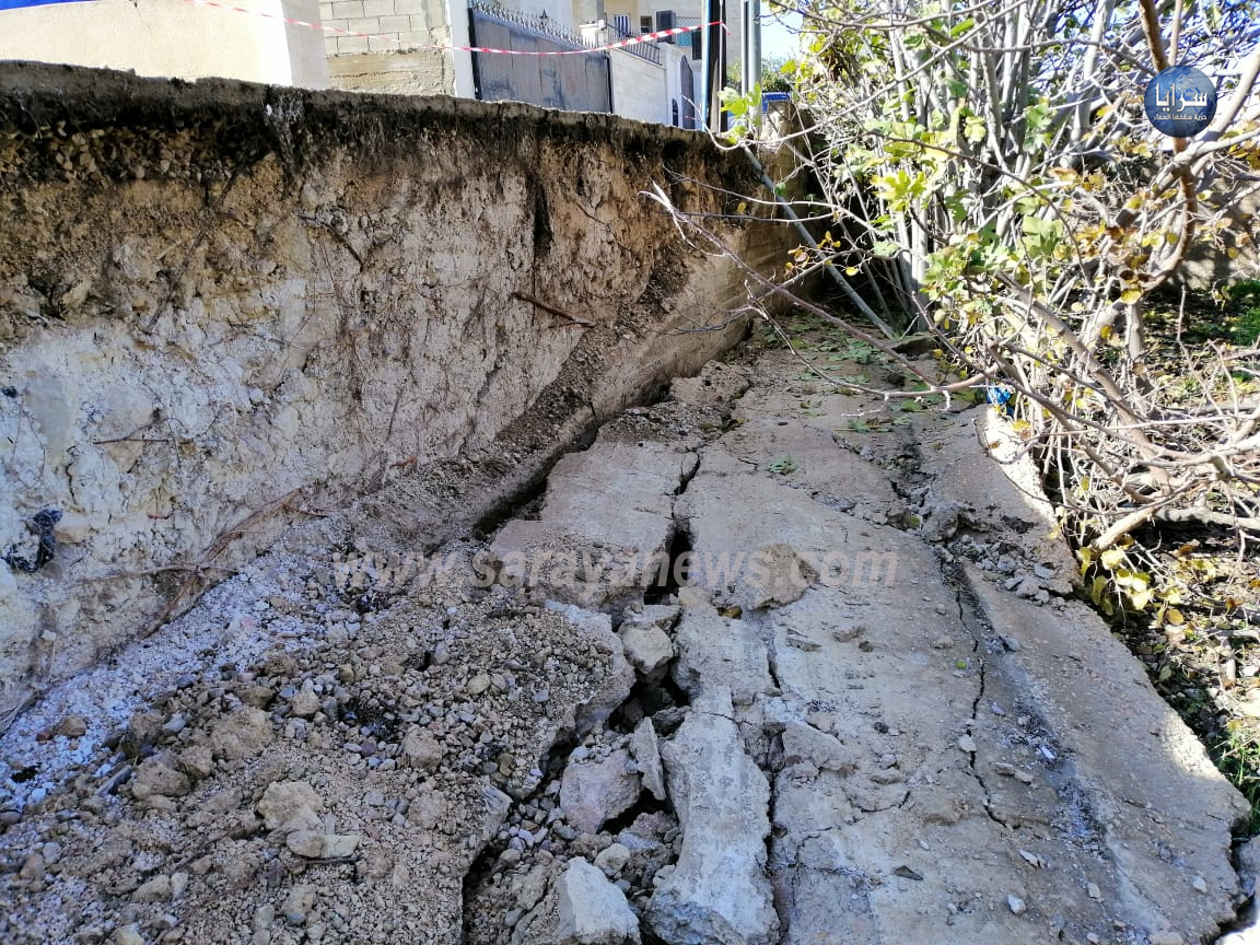 وبين المواطن ان انهيار الشارع جاء نتيجة الامطار الغزيرة التي شهدتها المملكة وعدم وجود صرف صحي .