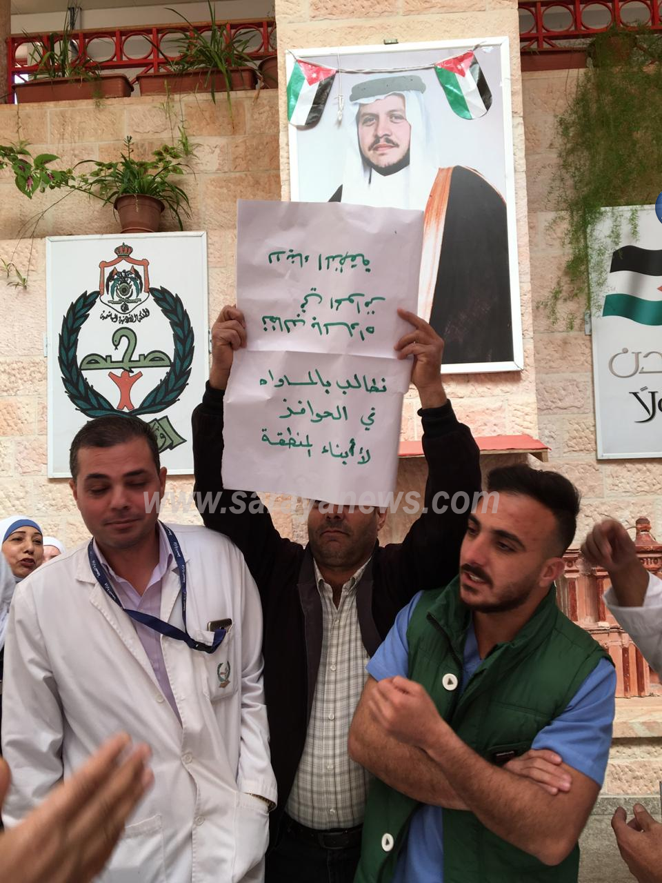 سرايا - حسين السلامين-نفذت الكوادر التمريضية والفنية والإدارية من أبناء محافظة معان والعاملين في مستشــفى معان الحكومي ومستشــفى الملكة رانيا العبدالله الحكومي وقفة احتجاجية كل في مكان عمله للمطالبة بزيادة نقاط حوافزهم أســـوة بزملائهم الموظفين من خارج المحافظة.