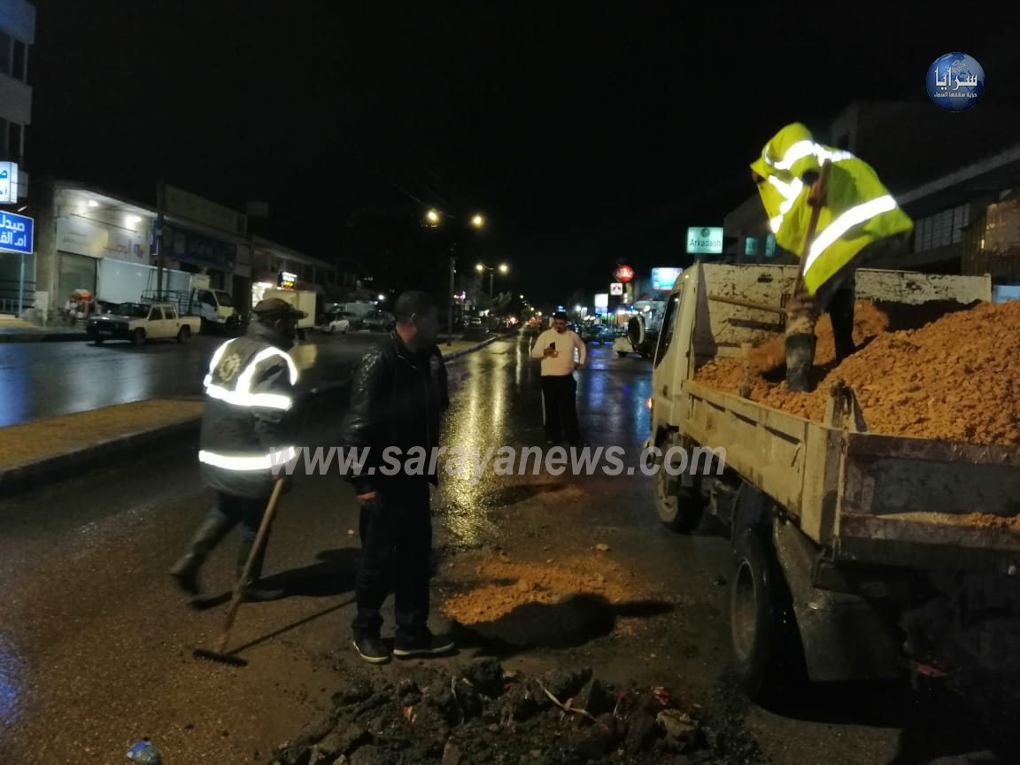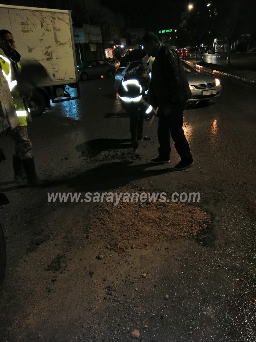 وأضاف التل لسرايا أن فرق صيانه الطرق تحركت إلى الموقع وجاري العمل على ردم الحفرة حفاظا على حياة المواطنين ألتي خلفتها أعمال حفريات لسلطة المياه.