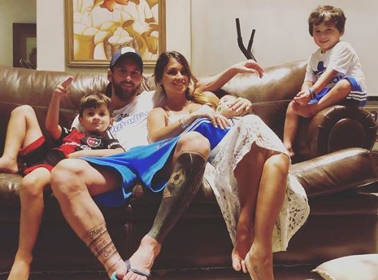 ميسى وزوجته وأولاده أنطونيلا روكوزو، نشرت صورة لها عبر حسابها على انستجرام، برفقة ميسى وأولاده وهم جالسين على الأريكة، وعلقت قائلة:"الأحد الأخير من 2018".