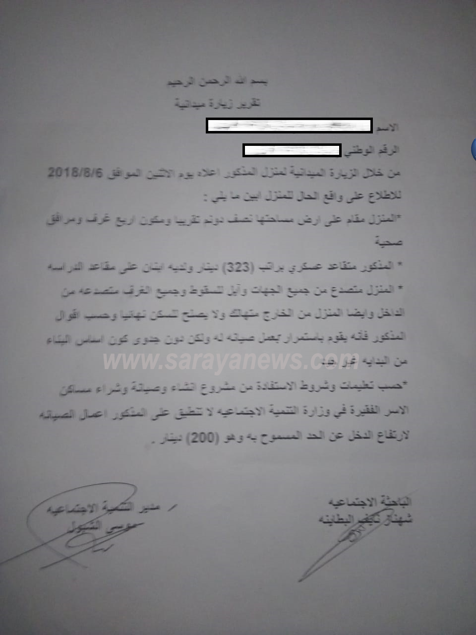 سرايا بدورها تضع بين ايديكم رقم هاتف رب الأسرة للمساعدة 0772218025