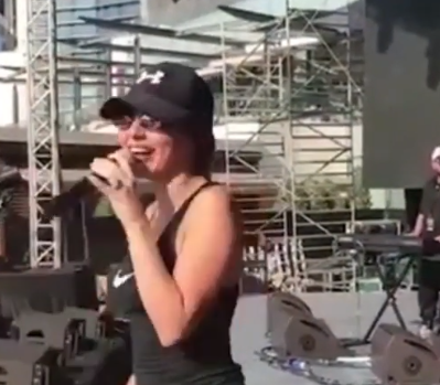 وارتدت ميريام خلال البروفا مع فرقتها الموسيقية، ملابس رياضية سوداء اللون، نسقت معه حذاء رياضياً أبيض، فيما ارتدت قبعة على رأسها ونظارة شمسية.