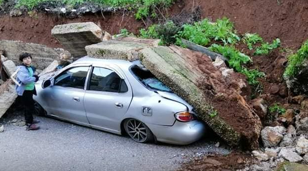 سرايا - انهار جدار من الاسمنت صباح اليوم الاثنين على مركبة احد المواطنين في كفرنجة، بسبب الامطار الغزيرة التي هطلت على محافظة عجلون يوم امس.