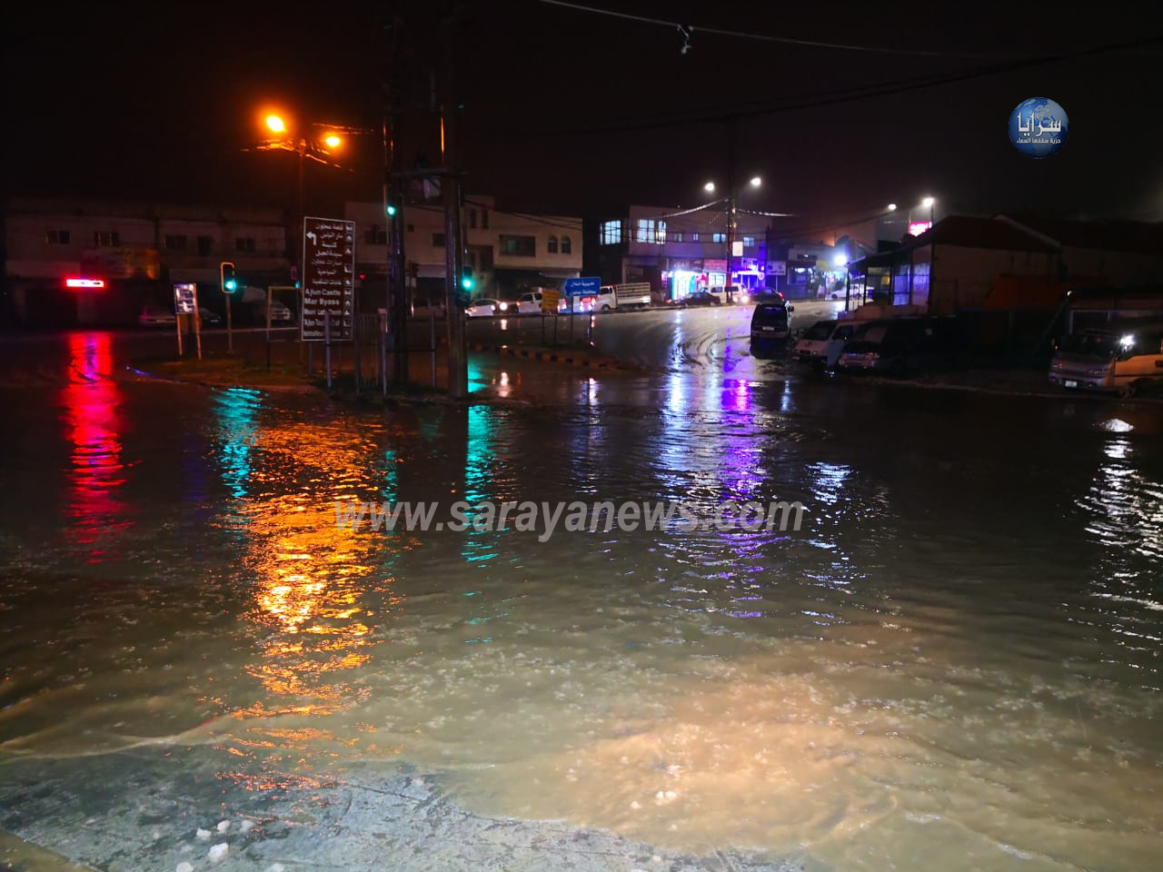 هذا وتشكلت البرك الكبيرة التي تسببت في تعطيل حركة المرور بشكل جزئي نظراً لكثافة المياه التي غمرت الشارع الرئيسي .