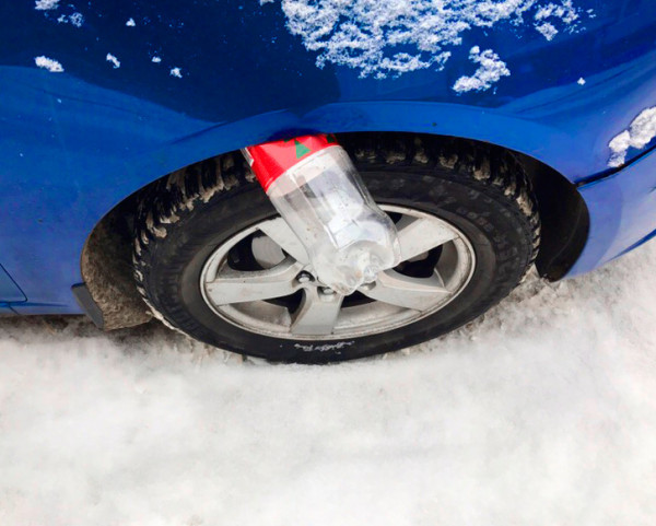 عادة ما تستخدم تلك الحيلة بمواقف السيارات الخالية، فيضع اللص زجاجة فارغة بين إطار السيارة وحاجزها من جانب الراكب حتى لا يلاحظها السائق، وعند التحرك سيسمع السائق صوتا مرتفعا وهنا تحدث السرقة لأنه عادة ما يترك السائقون المحرك يعمل ولا يأخذون أشيائهم الثمينة معهم.