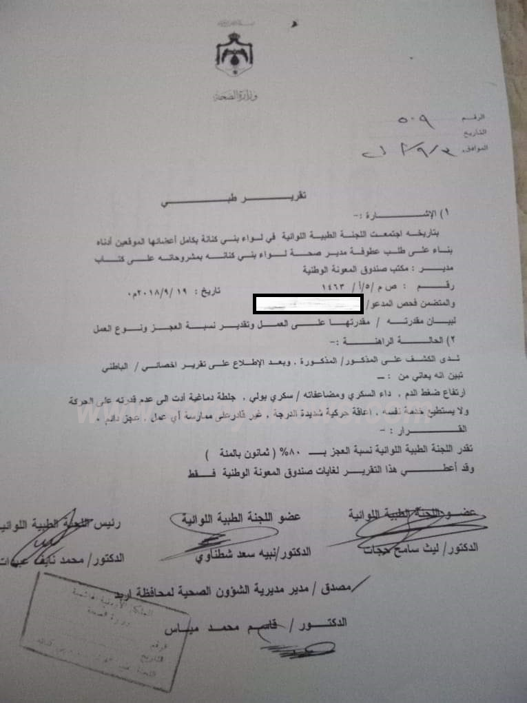 وفي التفاصيل قالت السيدة لسرايا سيدة ان زوجها تعرض زوجها لشلل نصفي حاد بنسبة 80%، اقعده عن العمل مما تسبب بفقر وعوز لها ولاطفالتها الثلاثة لعدم وجود معيلاً لهم سواء رحمة رب العالمين والـ(50) ديناراً من صندوق المعونة الوطنية .
