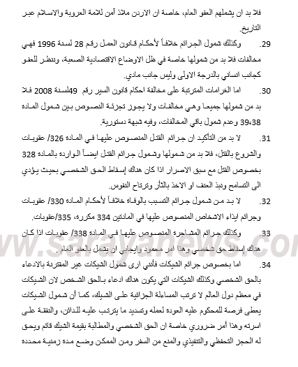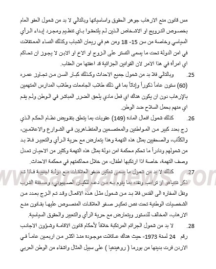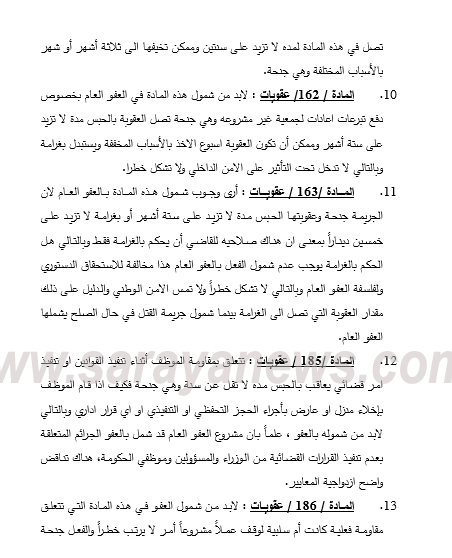 وأضاف العودات في تصريح صحفي ان اللجنة تلقت مقترحات كثيرة من أعضاء مجلس النواب وهي الآن تقوم بمناقشتها، لافتا أن اللجنة تتجه إلى التوسع في مشروع القانون ضمن ضوابط ومعايير ومحددات رسمتها اللجنة منذ اليوم الأول لمناقشة القانون.