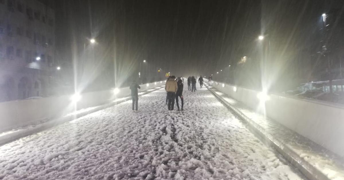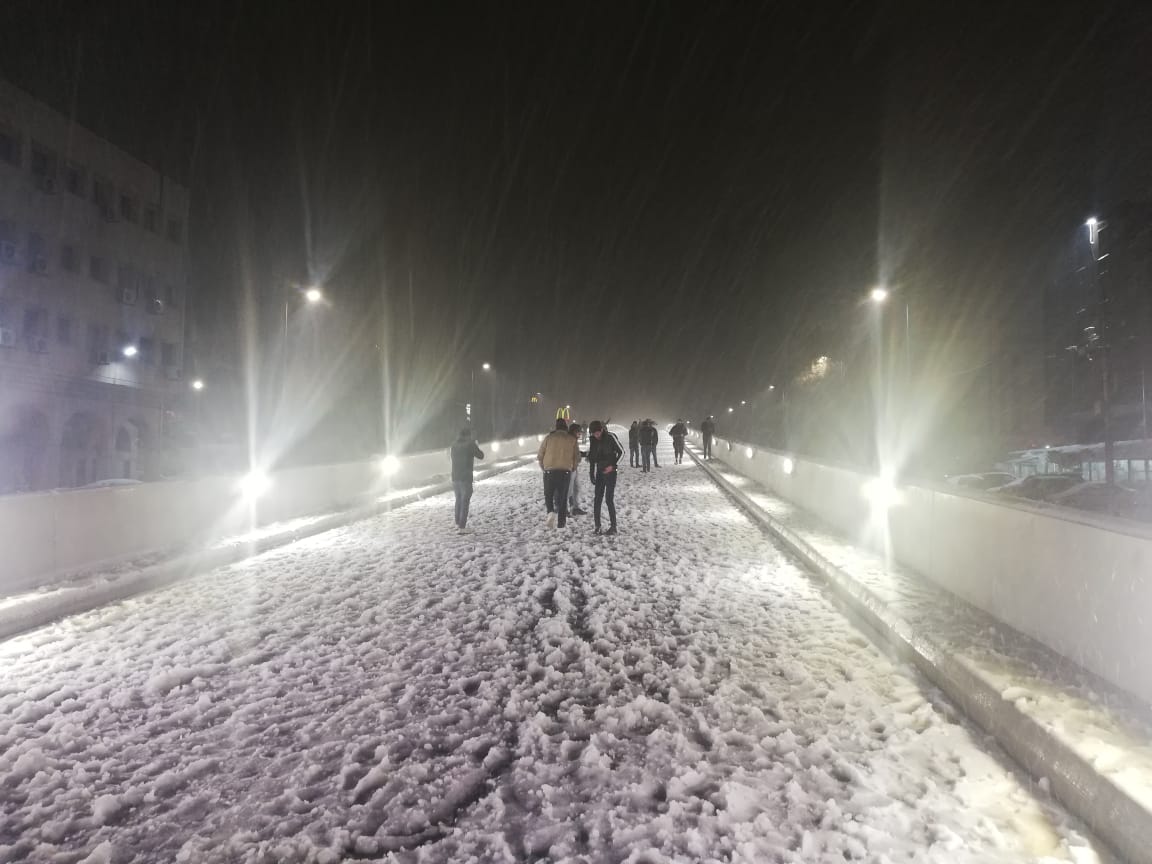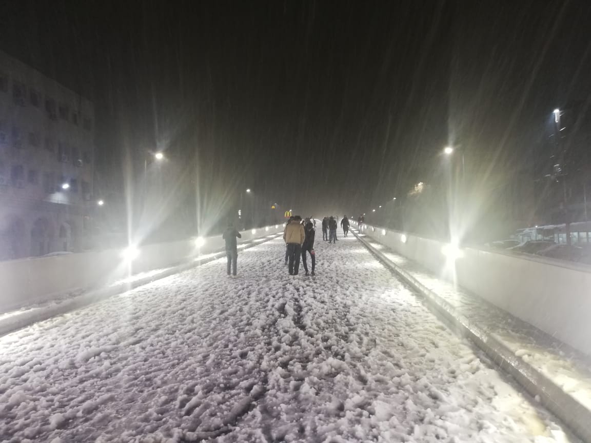 سرايا - التقطت عدسة سما الأردن صوراً لأشخاص يلعبون اثناء تساقط الثلوج في احد محاور شبكة الباص السريع باتجاه المدينة الرياضية