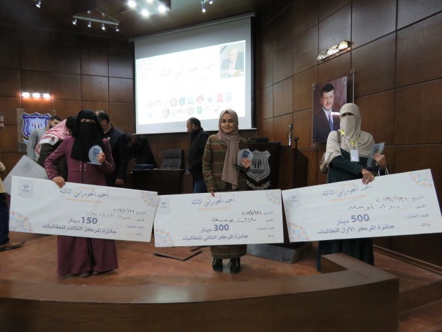 هذه الجائزة التي تعقد للسنة الثالثة على التوالي شارك فيها (35) طالب و(29) طالبة من (20) جامعة أردنية حكومية وخاصة وهي: (جامعة عمان الأهلية – جامعة مؤته – جامعة الأميرة سمية للتكنولوجيا – الجامعة الهاشمية – جامعة الزرقاء الأهلية – جامعة عجلون الوطنية – جامعة اربد الأهلية – جامعة آل البيت – جامعة عمان العربية – جامعة فيلادلفيا – جامعة الحسين بن طلال – الجامعة الألمانية الأردنية – جامعة الزيتونة الأردنية الخاصة – الجامعة الأردنية – جامعة العلوم الإسلامية – جامعة الشرق الأوسط – جامعة الطفيلة التقنية – جامعة البلقاء التطبيقية – جامعة اليرموك – جامعة العلوم التطبيقية)، وقد حصل الفائزون بالفئتين (طلاب/طالبات) على جوائز نقدية قيمتها 500 دينار للمركز الأول، 300 دينار للمركز الثاني و150 دينار للمركز الثالث.