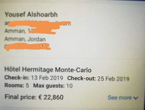 سرايا - محمد النواطير - نفى امين عمان المهندس يوسف الشواربة في اتصال هاتفي مع سرايا صحة الوثيقة التي يتم تداولها ووصلت مكاتب سرايا والتي اظهرت وجود حجز باسم شبيه للشواربة بمدينة موناكو الايطالية بقيمة (23) الف يورو اي ما يعادل (20) الف دينار اردني .