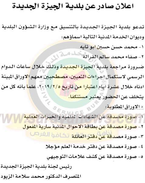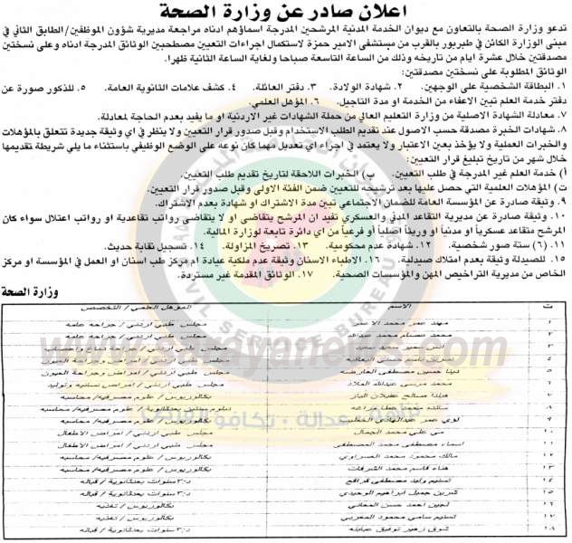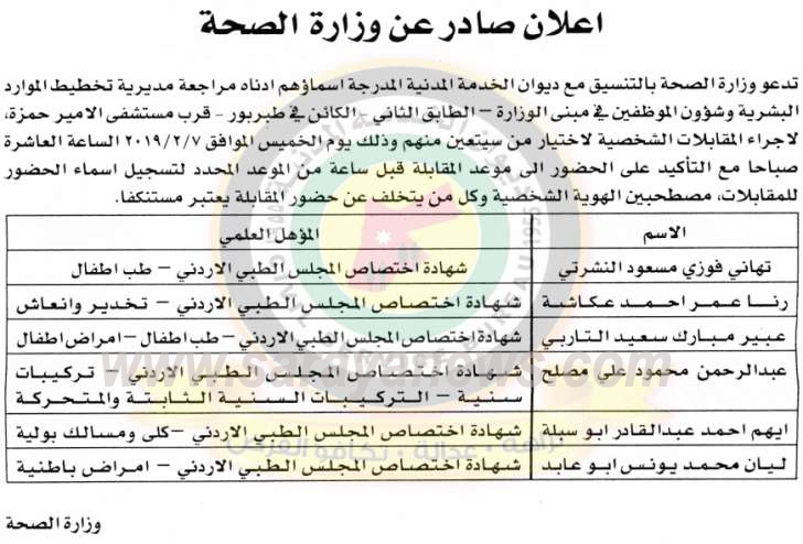 سرايا - دعا ديوان الخدمة المدنية بالتعاون مع مختلف الوزارات والمؤسسات الحكومية، التالية اسماؤهم لاجراء المقابلات الشخصية وعقد الامتحان التنافسي لغايات التعيين.