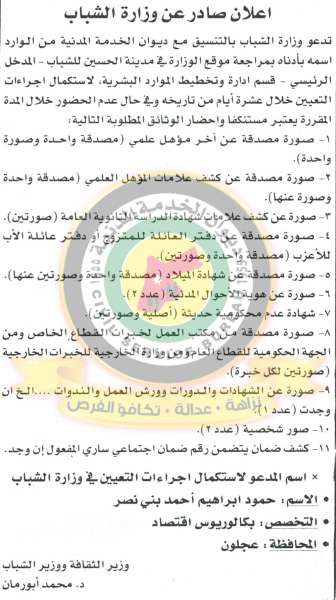 كما دعا الديوان بالتنسيق مع مختلف المؤسسات والوزارات إلى تعبئة شواغر مختلفة استنادا للشروط المنصوص عليها من كل مؤسسة.