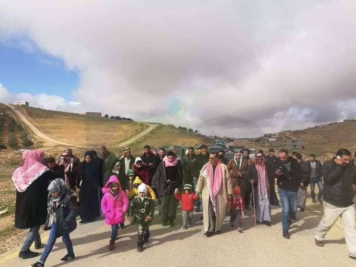 سرايا - انطلق صباح السبت الدكتور فلاح ذياب العريني وعائلته المكونة من خمسة أولاد وسبع بنات في مسيرة راجلة من قرية غرندل في لواء بصيرا التابع لمحافظة الطفيلة إلى الديوان الملكي في العاصمة عمان للمطالبة بحقه في التعيين.
