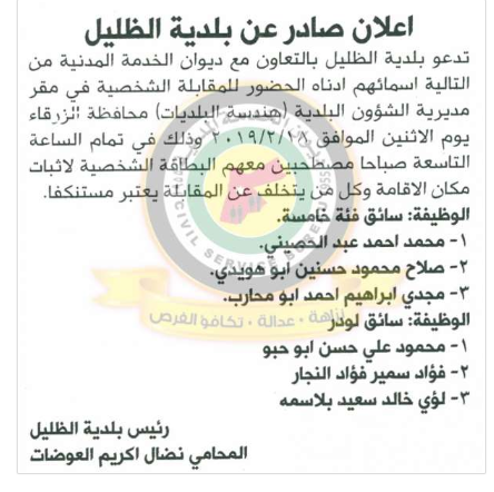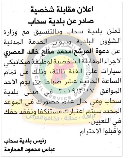 سرايا - دعا ديوان الخدمة المدنية بالتعاون مع مختلف الوزارات والمؤسسات الحكومية، التالية اسماؤهم لاجراء المقابلات الشخصية وعقد الامتحان التنافسي لغايات التعيين.