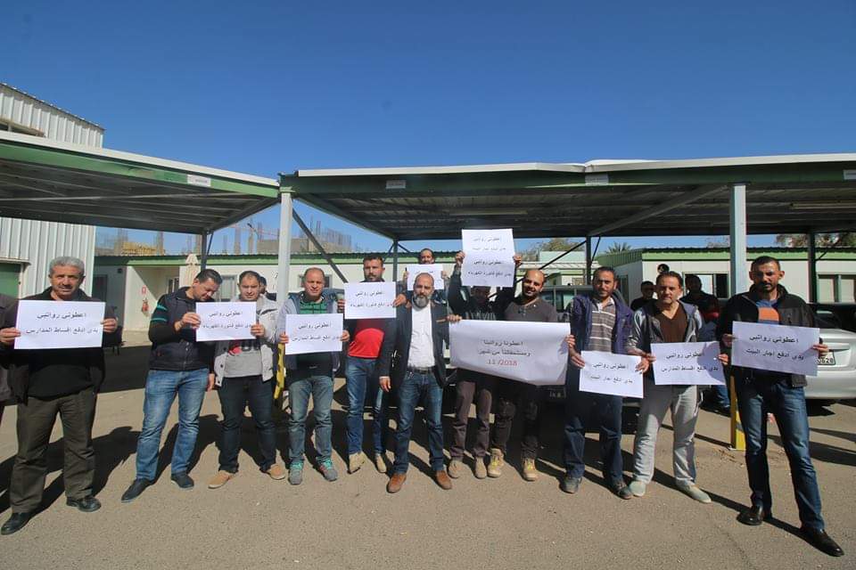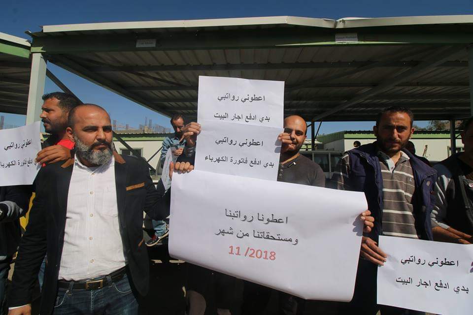 وطالب المعتصمون بايجاد حل سريع وفوري لتحصيل حقوقهم المالية ، قائلين :"بدنا رواتبنا عشان ندفع إيجار بيتنا".