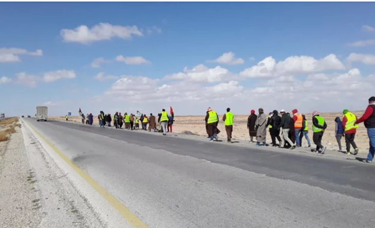 سرايا - وصل اكثر من 70 متعطلا عن العمل، الى منطقة القطرانة في محافظة الكرك، بعد انطلقوا قبل اربعة ايام من العقبة، متوجهين الى عمان للمطالبة بفرص وظيفية بالعقبة.