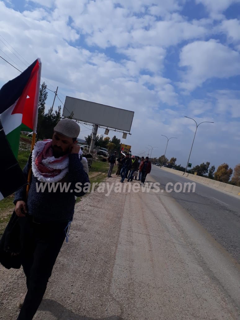 ويعتزم الشباب المتعطلين عن العمل السير مشيا على الأقدام حتى الوصول الى عمان وإقامة اعتصام مفتوح أمام الديوان الملكي للمطالبة بإيجاد فرص عمل لهم.