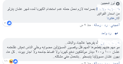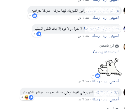وعبّر النشطاء عن استيائهم من قرارات شركة الكهرباء فقالوا ان الحكومة اعلنت قطع التيار تزامنا مع صرف دعم الخبز .