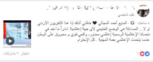وتداول عدد من الناشطين العديد من المنشورات والتفاعل لما دار من حديث بين المجالي الفراجين، وتاليا بعض من تلك التفاعلات: