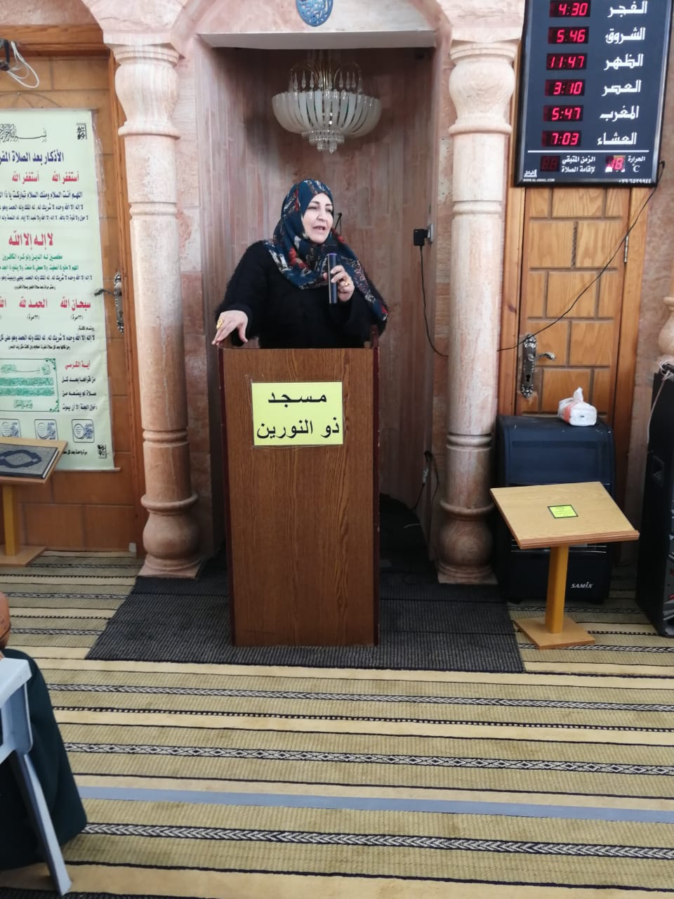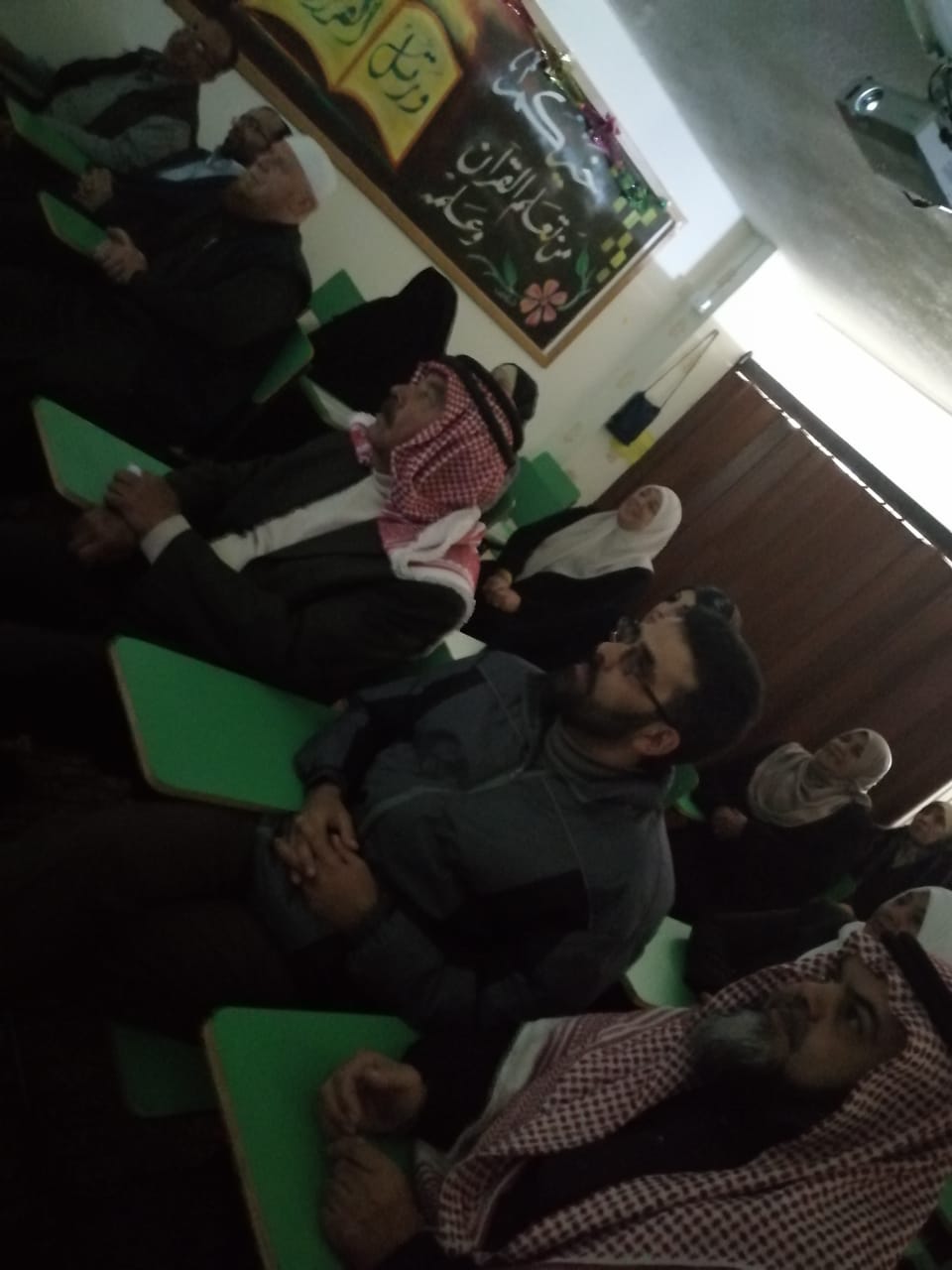 ويذكر حضور كل من وبحضور رئيسه قسم الأحداث والأمن المجتمعي في مديريه التنميه الاجتماعيه نسرين الناظر، والشيخ عاطف الصالح رئيس قسم دور القرآن الكريم في مديرية اوقاف الزرقاء، والشيخ محمد الزبن مدرب التنميه البشرية من مديريه اوقاف الزرقاء والرصيفة، وعدد من وجهاء المنطقة.