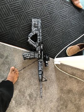 ونشر الصحفي خير الدين الجابري على صفحته في "تويتر"، صورة قال إنها للسلاح الذي استخدم في الهجوم على المسجدين، أرفقها بترجمة للعبارات التي خطت عليه.