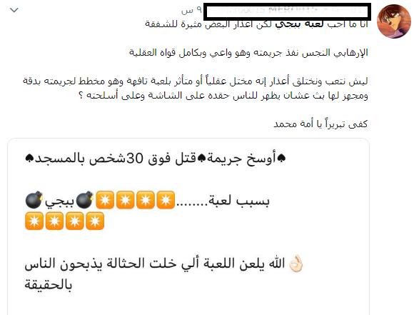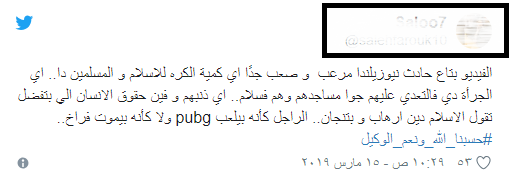 وطالب ناشطو "التواصل الاجتماعي" عبر موقع المدونات الصغيرة "تويتر" ايقاف لعبة ال" PUBG" التي اعتبروها وسيلة لبث الكراهية والحقد والعنف بقلوب الناس ،مستاؤون من المشهد الاليم الذي ظهر به مسلمين نيوزيلندا بهذا الشكل المروع الشبيه بال"ببجي PUBG "