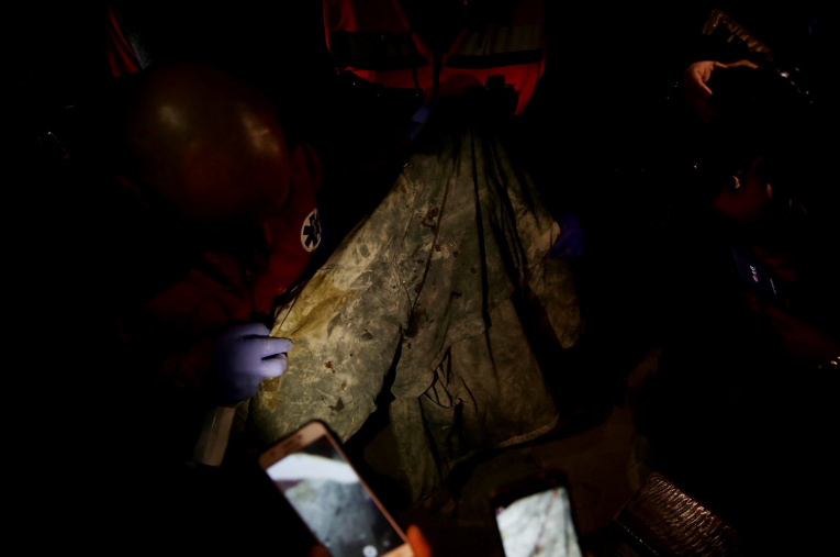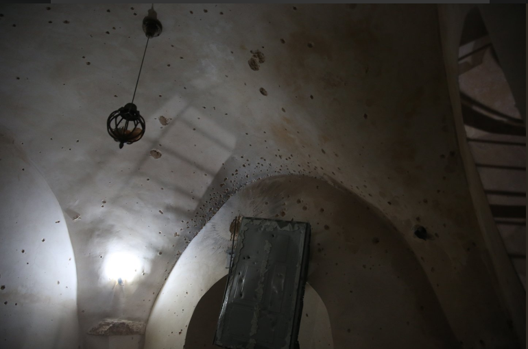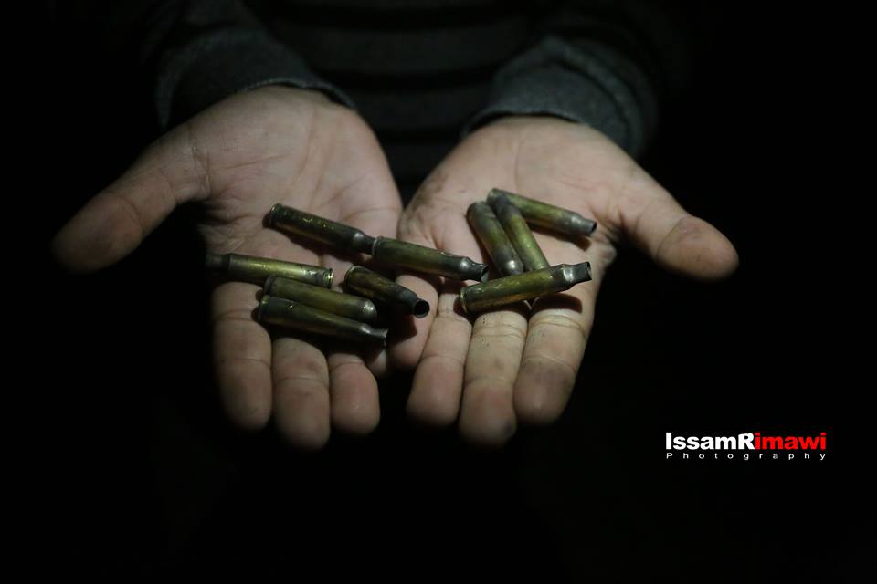 وتايل صور الرصاص وملابس والشظايا، من مكان استشهاد الشاب عمر أبو ليلى في منزل قديم تحصّن داخله في قرية عبوين شمال رام الله.