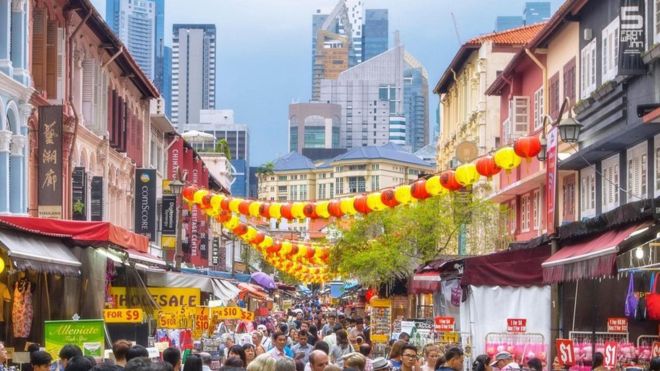 وتضيف: "يُشاهد المتجول في سنغافورة المعابد البوذية جنبا إلى جنب مع المتاجر المشيدة على الطراز البريطاني، وأسواق الطعام المحلية التي تقدم وجبات الدجاج والأرز الصيني إلى جانب الأرز المقلي على الطريقة الإندونيسية وشطائر اللحم على الطريقة الغربية".