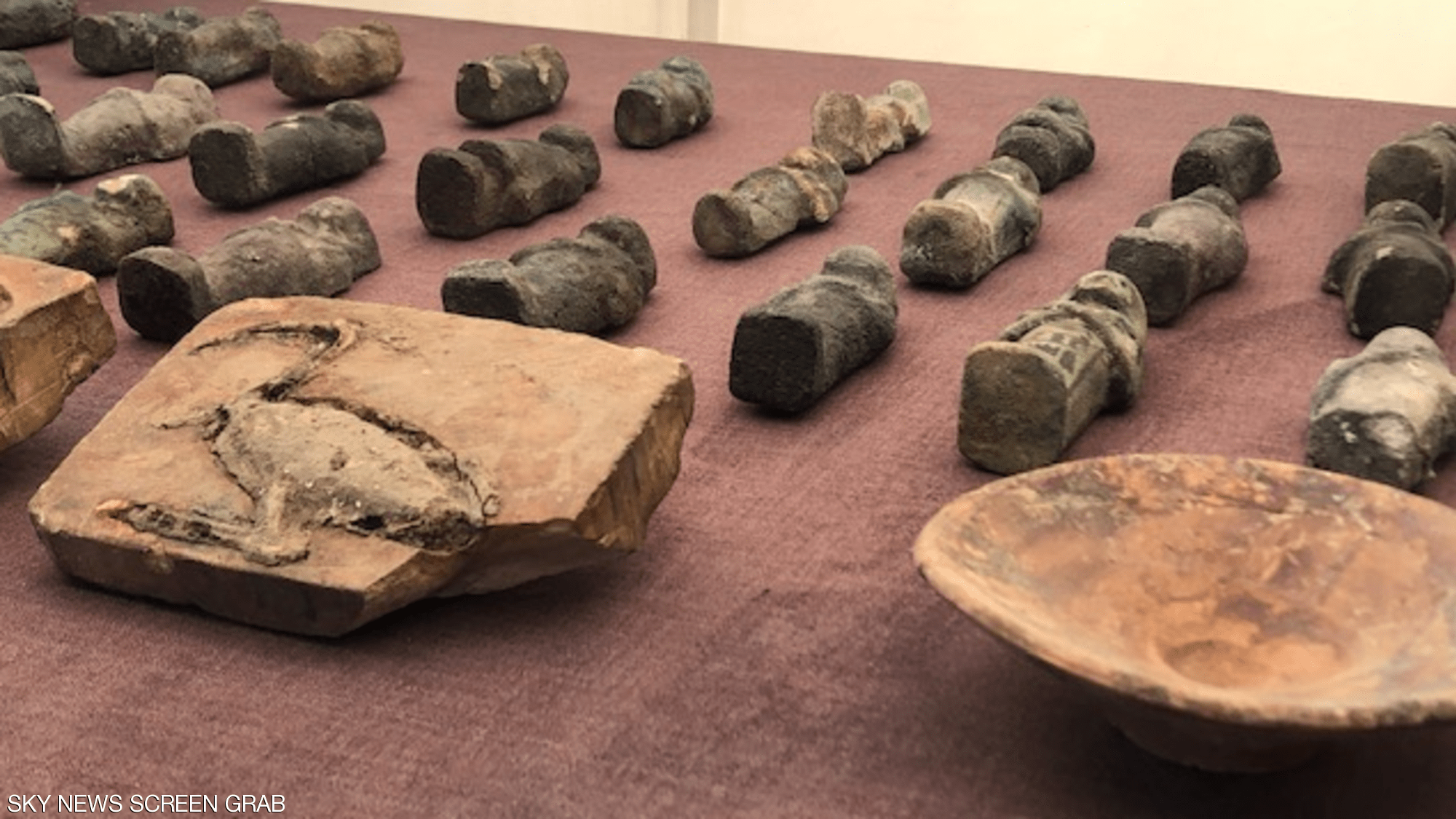 كما تم العثور على فناء مساحته 550 مترا مربعا، ومقصورة من الطوب اللبن وآبار، وآلاف التماثيل الصغيرة، وعدد من الأقنعة.