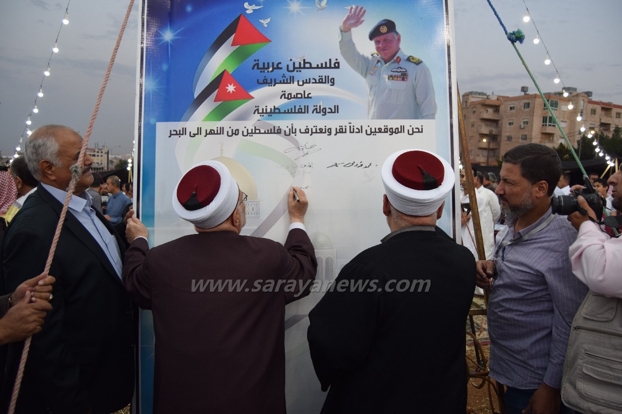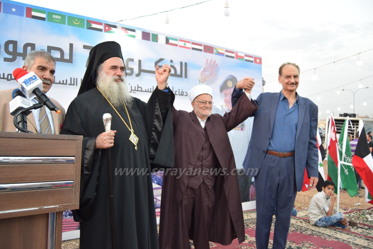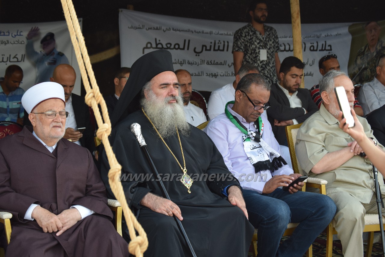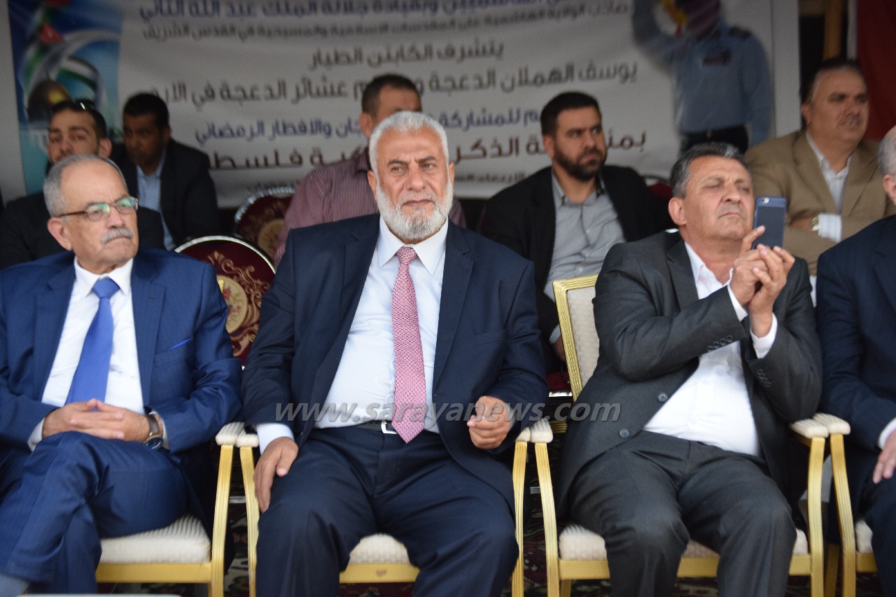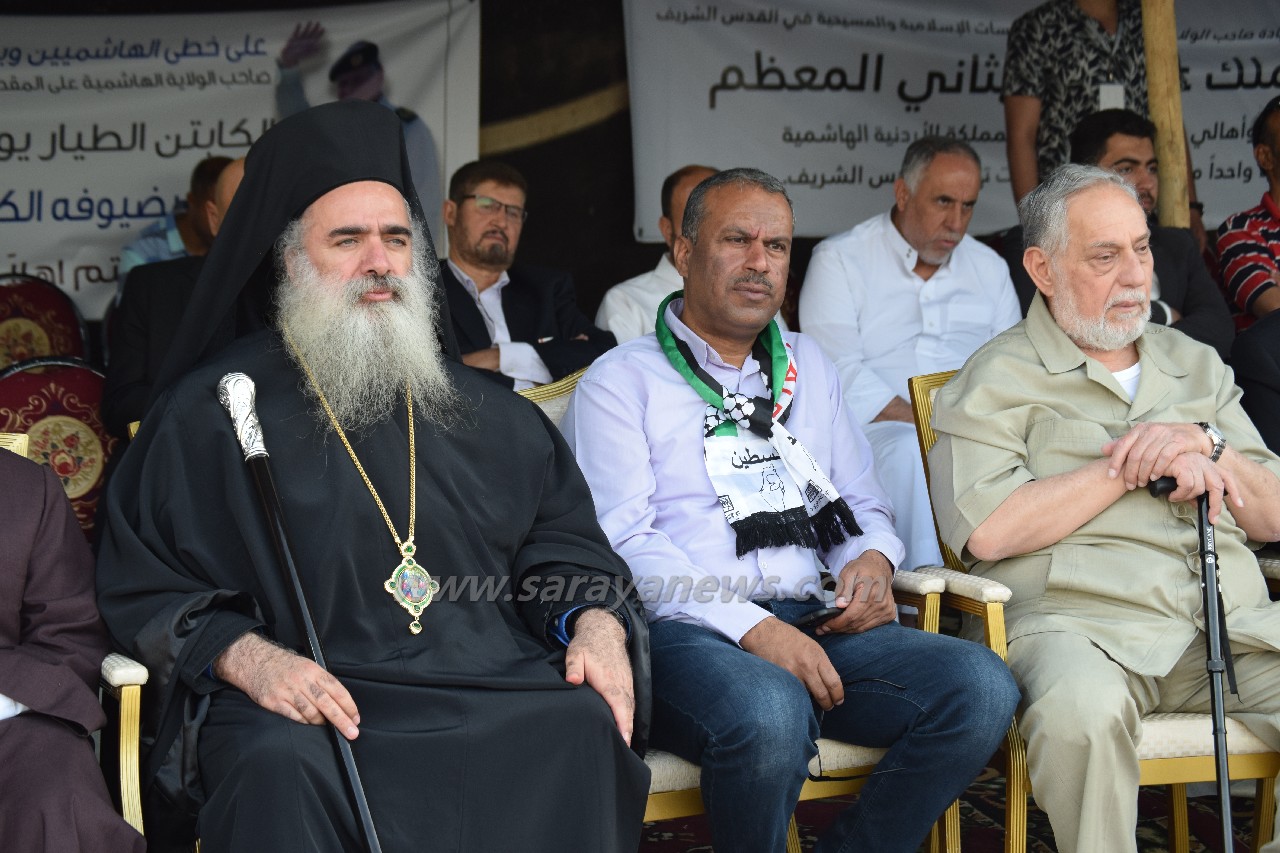 وحضر الفعالية عدد من الشخصيات والقامات الوطنية ورجال دين ووفود من مختلف الاوطان العربية تأكيداً على دعم القضية الفلسطينية والوصاية الهاشمية .