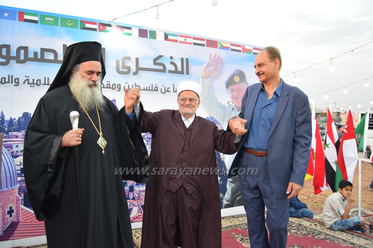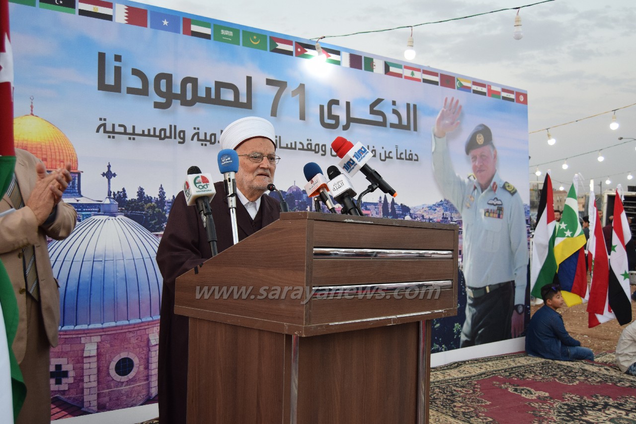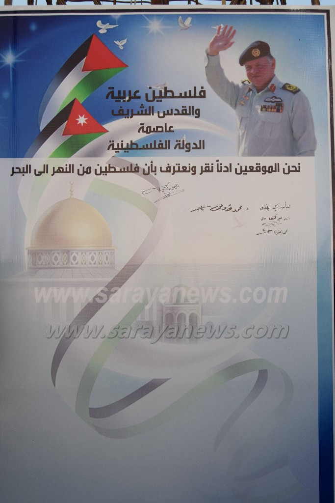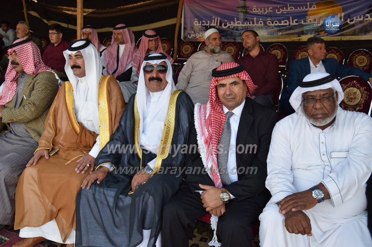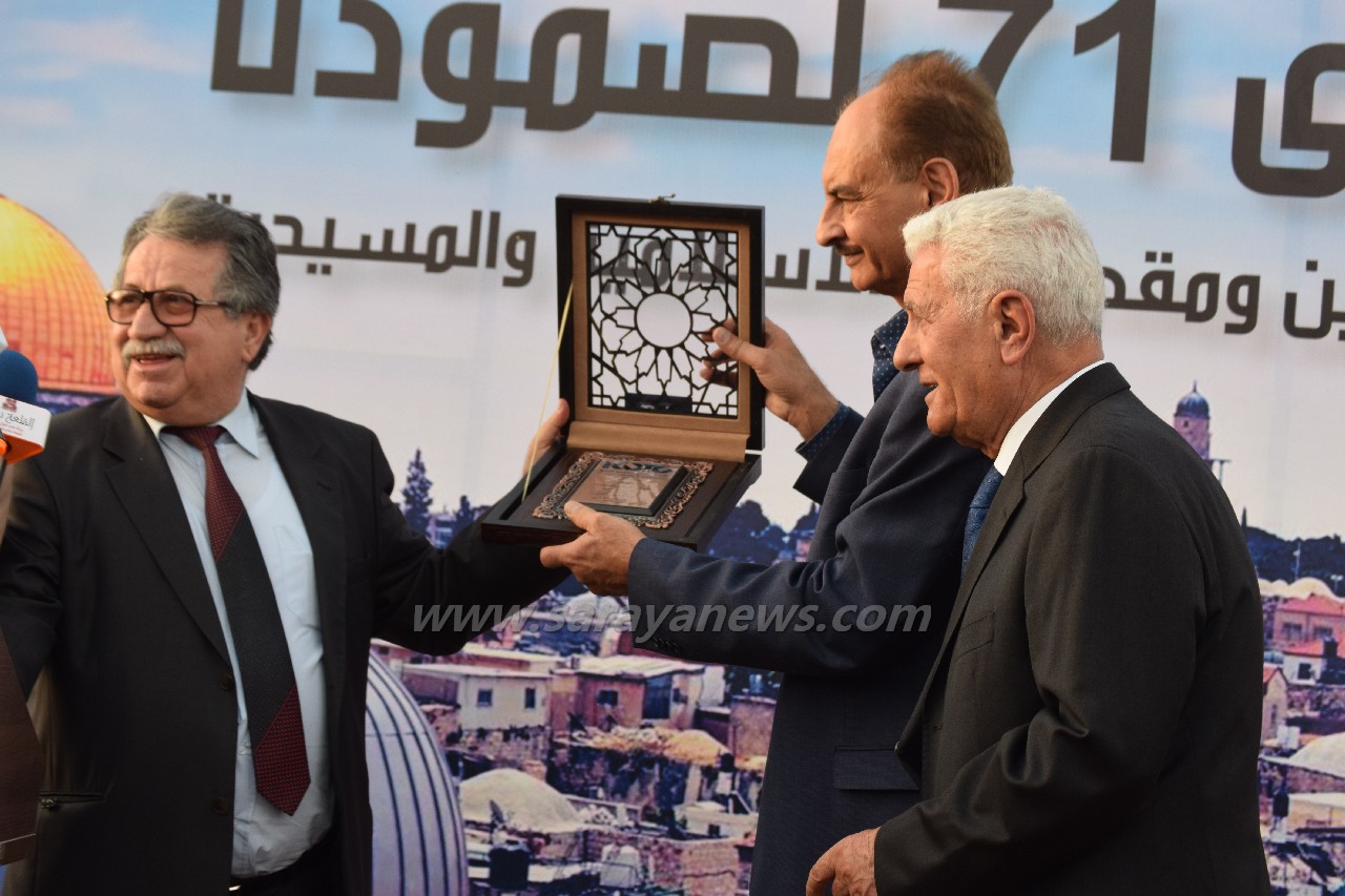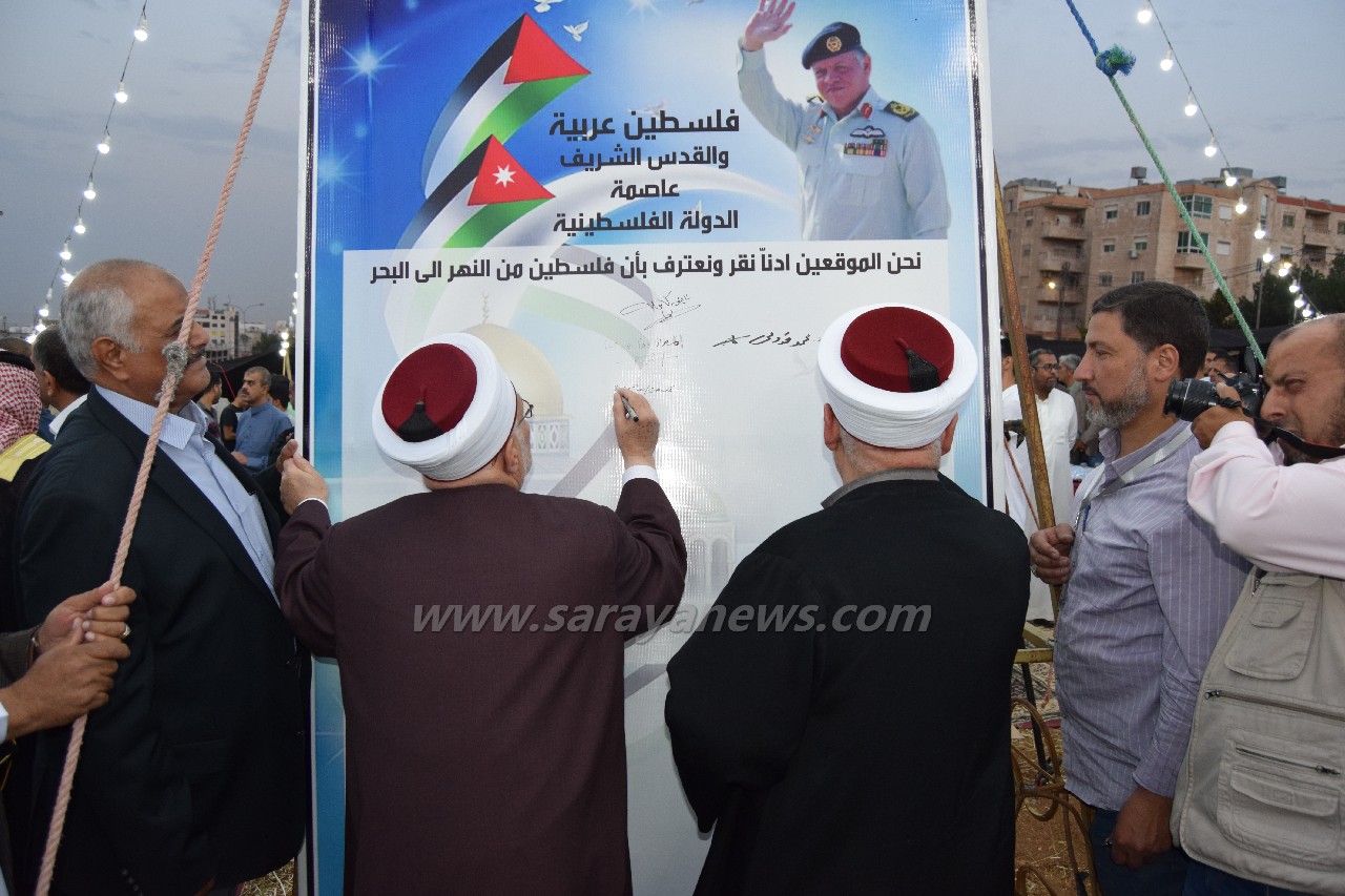 وحضر الفعالية عدد من الشخصيات والقامات الوطنية ورجال دين ووفود من مختلف الاوطان العربية تأكيداً على دعم القضية الفلسطينية والوصاية الهاشمية .