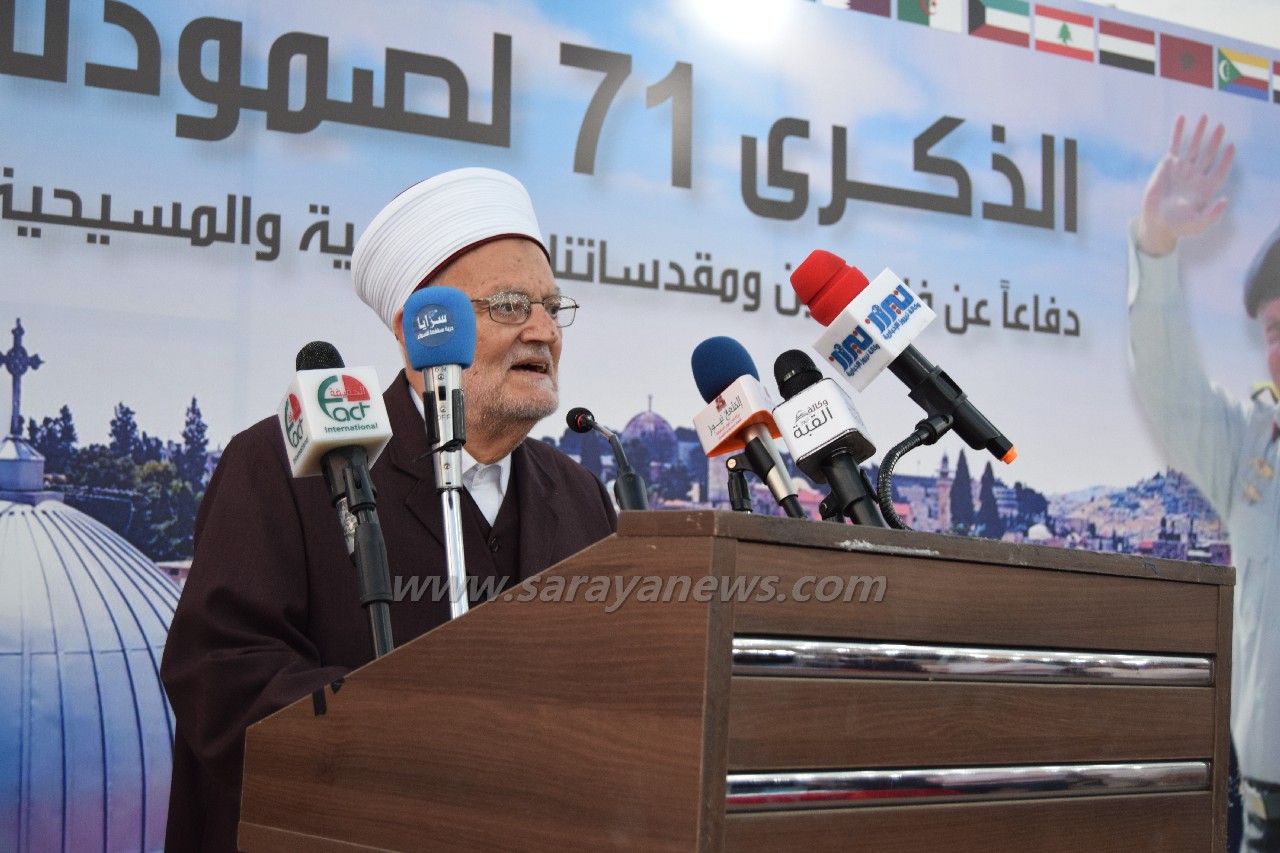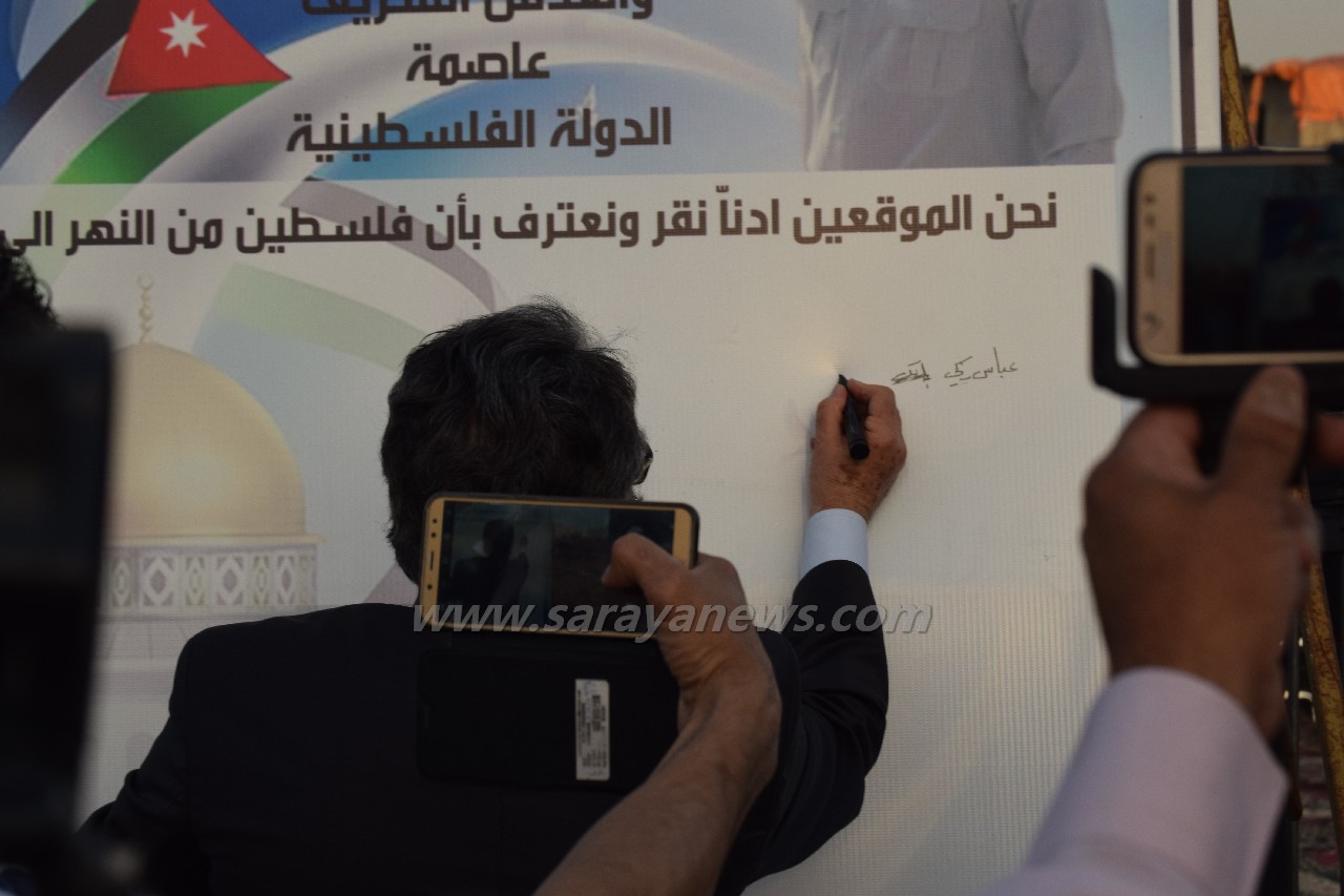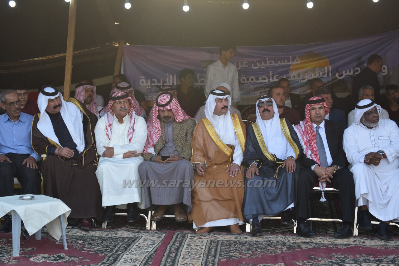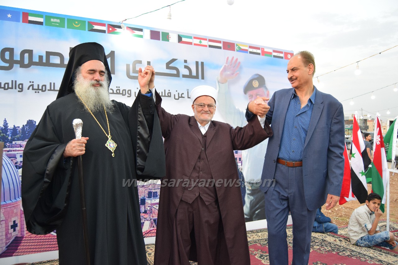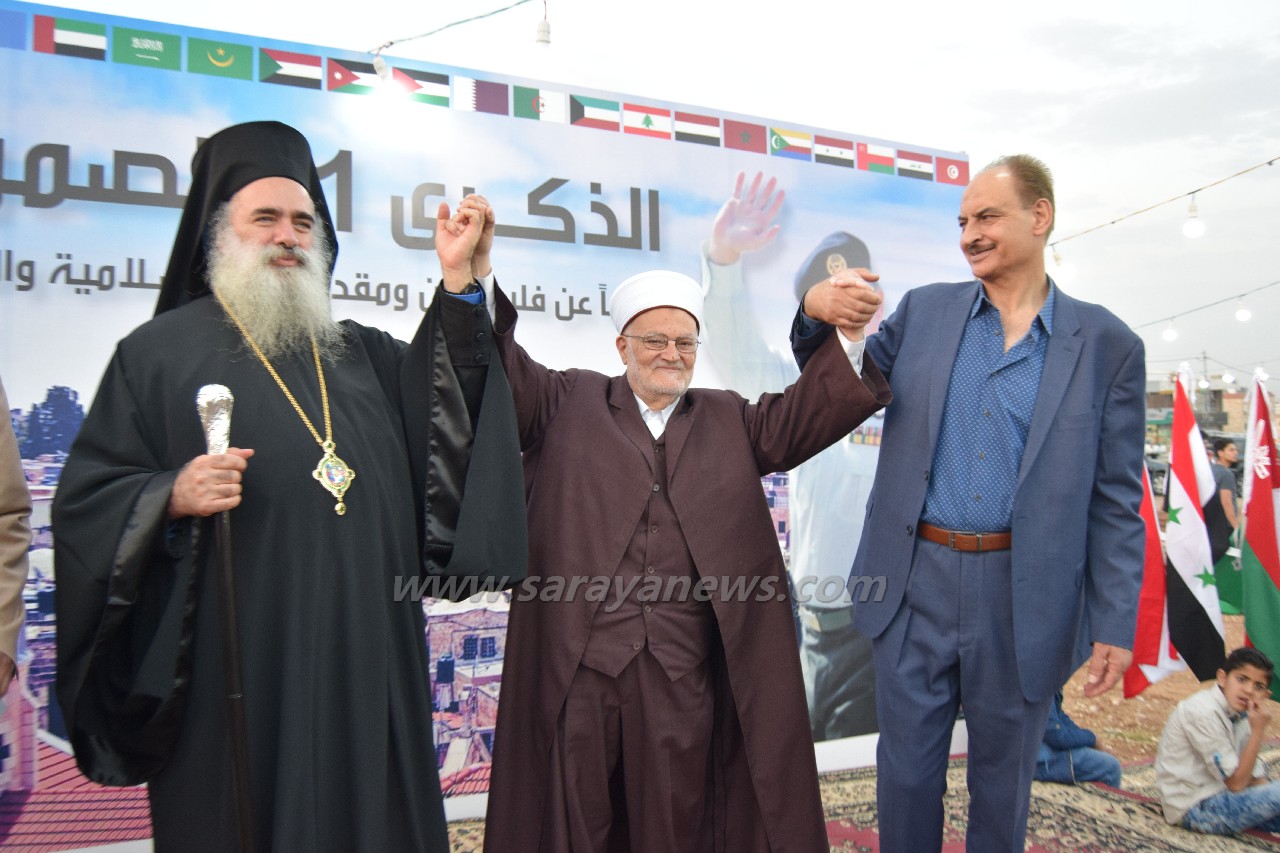 وحضر الفعالية عدد من الشخصيات والقامات الوطنية ورجال دين ووفود من مختلف الاوطان العربية تأكيداً على دعم القضية الفلسطينية والوصاية الهاشمية .